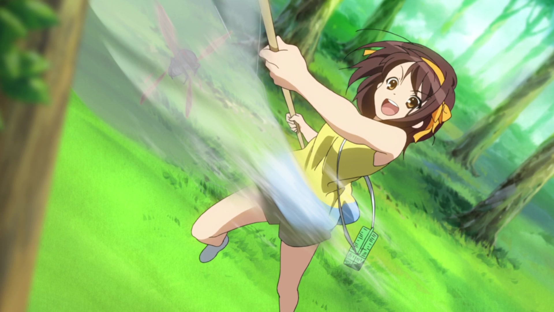 Kyon: ‘Something’s wrong. That’s what it felt like anyway. The game on TV was between teams in another town. Now I had nothing to do with either school, but since I tend to sympathize with underdogs, I found myself rooting for the losing team. And that’s right when I felt that Haruhi was going to call.’