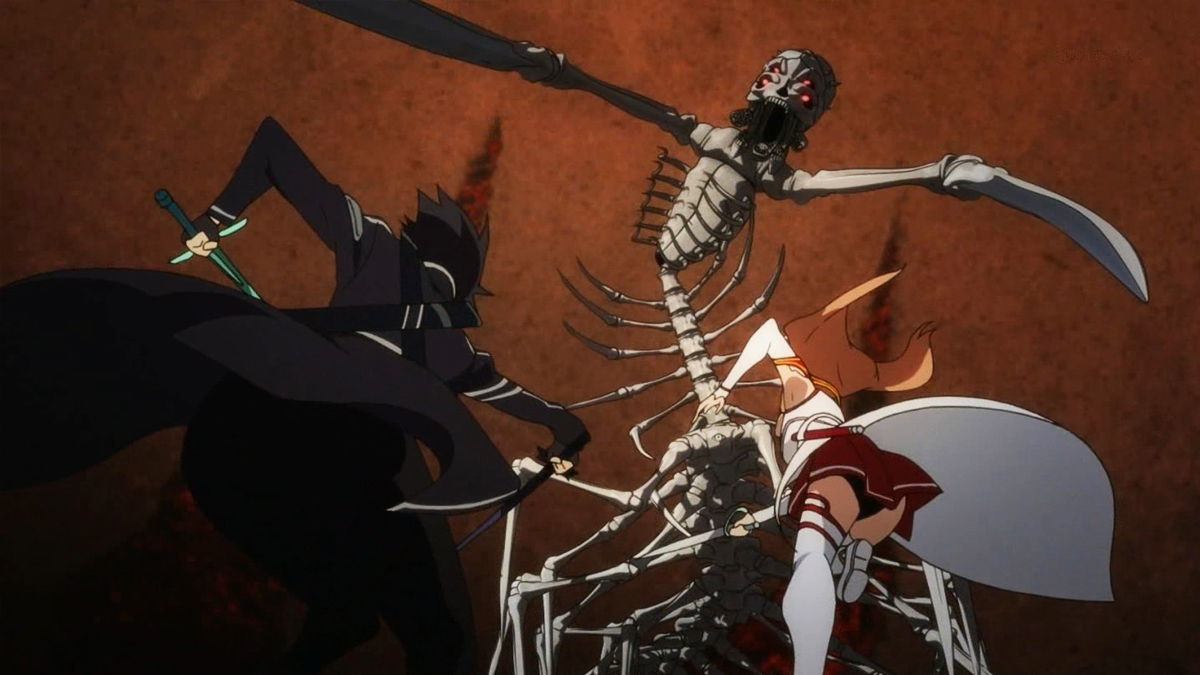 While there’s plenty to admire about Sword Art Online, the anime does have its shortcomings. Spaning for over 2 long years, a lot naturally happens to the characters while trapped in SAO, and 14 episodes hardly seems like enough time to fully explore the complexities of the virtual world and the psyche of the players, who form profound friendships with one another and adapt to their unnatural surroundings. Consequently, a lot feels rushed and there are large chunks of time omitted, which disrupt the natural narrative progression and character relationships, making the show sometimes difficult to really oneself immerse into — a lot of the time audiences might find themselves trying to piece together what’s been happening over the lost months. Extending this story arc to 24 episodes rather than 14 would have strengthened and benefited the anime, making the experience easer to fully delve into and become part of. Taking place in Aincrad, a medieval setting populated with weapon clad knights and powerful guilds, one would expect plenty of action throughout the show, but in this instance it’s not the case. Sword Art Online is essentially an epic love story, set in an online environment, with several action scenes scattered throughout, and while these few sequences are impressive, most are short lived.
