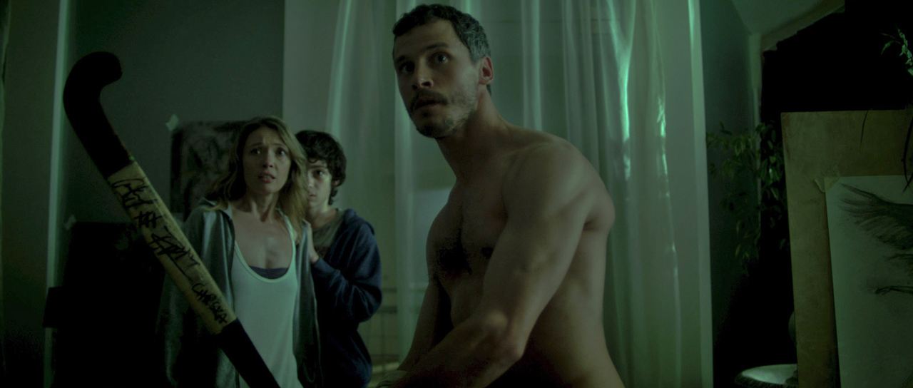 Furthermore, the three lead characters, Victor, Dan and Tom, are rather unlikable from the get-go, especially given their intolerable behavior; one can’t help but wish they eventually get what’s coming to them. While some of the characters become slightly more tolerable by the feature’s mid-point, they are never truly redeemed, leaving viewers somewhat disconnected from the fear. Other leads — the adults for instance — make illogical decisions on more than one occasion, predominantly choosing to leave temporarily incapacitated villains alive when they could have swiftly finished them off. Among the Living also comments on the effects of chemical use during warfare, Agent Orange for example — one of the herbicides and defoliants used by the U.S. military during the Vietnam War — and similarly to Craven’s The Hills Have Eyes (1977), promises to deliver a nasty, heavily mutated antagonist at its core. Alas, when the ‘hidden’ distorted son, Klarence, is finally revealed — portrayed by Fabien Jegoudez, Mood Indigo (2013) — the nude, albino-like figure is slightly disappointing and feels bland and uninventive. Nonetheless, Klarence is at least wicked enough to conjure some cringe worthy scenes, chiefly when he attempts to choke someone to death with his bare foot.