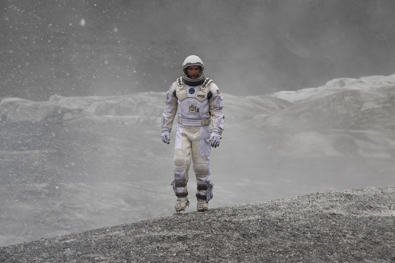 Given its gargantuan budget, Interstellar is a visually impeccable marvel and a well-devised picture — it features a glimpse of a near future apocalypse that’s brilliantly written and imagined — whilst investigating space and time, showcasing visuals never before captured on camera. Kop Thorne, who worked as a scientific consultant and executive producer on the film, ensures that the wormholes depicted are as accurate as possible, whereas images of space bear a resemblance to the grainy ultra-realism most notable in IMAX documentaries, seamlessly integrating CGI with live action effects. The planets themselves are well designed, and with Nolan’s long-time collaborator, Wally Pfister, busy working on Transcendence (2014) — his directorial debut — cinematographer Hoyte van Hoytema, Her (2013), has been called upon, lavishly illuminating these bleak minimalistic shells, most notably, a watery hell, complete with thousand-foot waves and an icy region where even clouds freeze. The 60s inspired robotics are equally as exceptional, with the robot crew members, TARS and CASE resembling chrome LEGO bricks that twist and rearrange themselves manually in order to perform complex tasks with minimal effort; interestingly enough, little CGI was used to bring these machines to life as actor, Bill Irwin, How the Grinch Stole Christmas (2000), manually operated them.