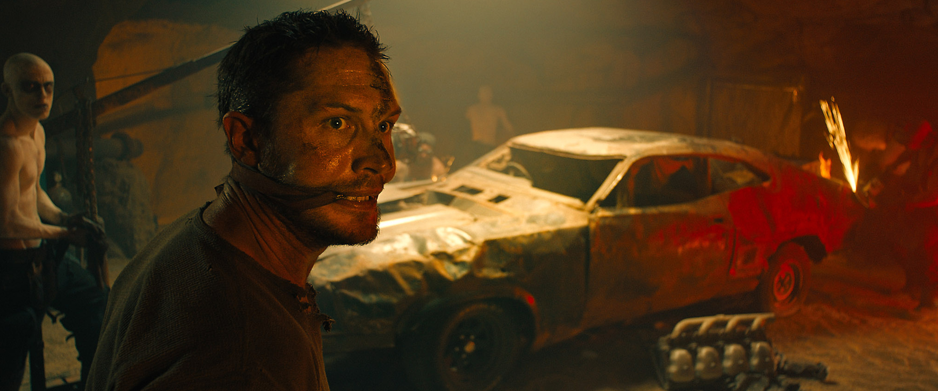 When Imperator Furiosa (Charlize Theron) — a War Rig operator who’s determined to wreak revenge for her past suffering — smuggles Joe’s prized ‘Five Wives’ — The Splendid Angharad (Rosie Huntington-Whiteley), The Dag (Abbey Lee), Toast the Knowing (Zoë Kravitz) Cheedo the Fragile (Courtney Eaton) and Capable (Riley Keough) — out of the Citadel, the enraged Warlord marshals all his gangs in a ruthless pursuit of the rebels in order to reclaim his precious ‘stolen’ cargo. Max is dragged into the madness when a young War Boy, Nux (Nicholas Hoult), uses him as a blood donor, tying Max to the hood of his car in an awfully ironic ‘Bane’ looking mask while draining Max’s blood into himself via an intravenous tube. As luck would have it, Max escapes and eventually crosses paths with Furiosa. At first, Max just wants to be left alone, but the pair reluctantly team up in search of a ‘green’ haven while they fight for survival in the high-octane Road War that follows.