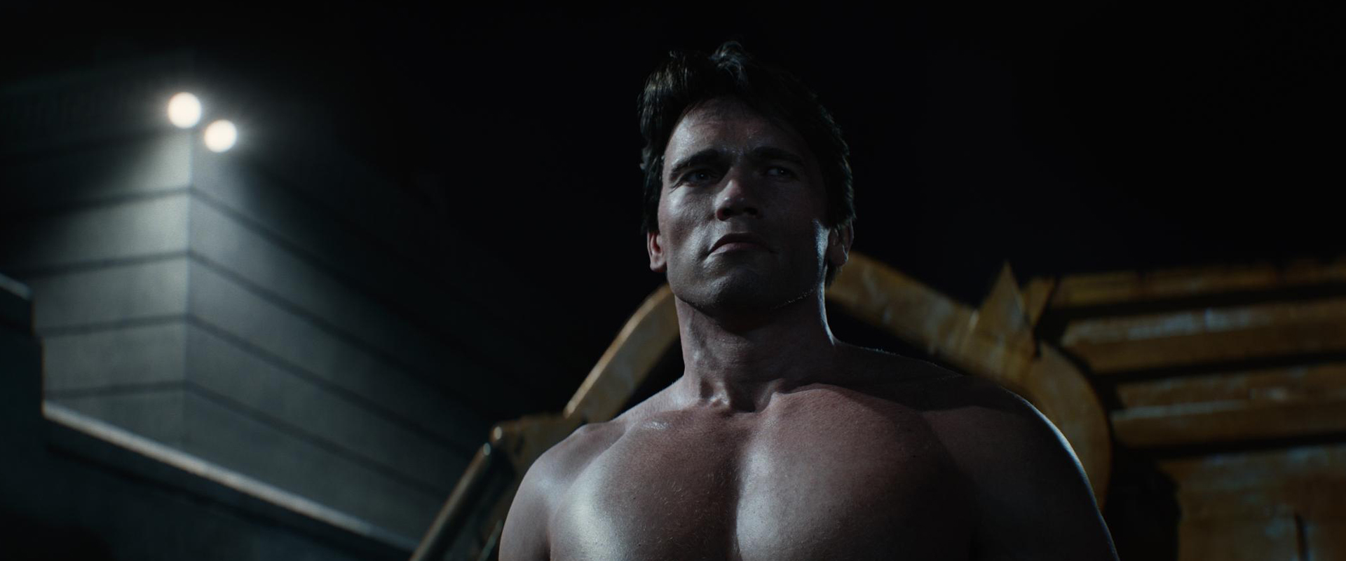 First and foremost, Genisys does an outstanding job in recreating some of the iconic visuals of prior Terminator pictures, meticulous recreations of the classic sequences which seemingly splinter off into fresh and offbeat directions, while remaining incredibly respectful to the characters Gale Anne Hurd and James Cameron created so many years ago. Some such nostalgia glazed moments include Kyle Reese ‘electrifying’ landing in 1984 — where he arrives naked in a dark and grungy downtown Los Angeles alley, only to be greeted by a homeless derelict — to the supremely pumped and buff old-school Schwarzenegger, 31 years younger, who gets locked in a primitive head-to-head confrontation with the current version of himself; a brutal Terminator-on-Terminator fistfight — certainly one of the flick’s more engaging scenes. And while the de-aging gimmick has certainly been done before, it’s never looked this convincing, as audiences truly feel like they’re watching a younger Arnie fight against an older version of himself.