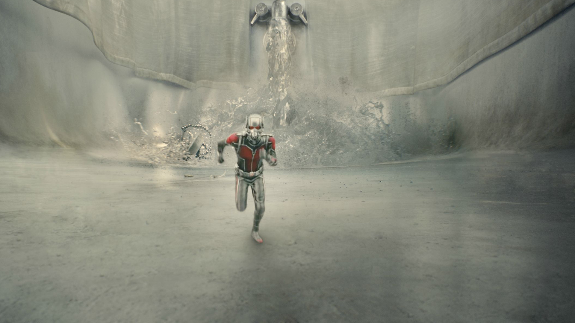 In the grand scheme of all things Marvel, Ant-Man — the next piece of the Marvel-verse puzzle — feels extremely personalized and rather local with the majority of the action taking place within crammed indoor quarters such as banal households or science labs, unveiling the minuscule worlds amid bathroom tile work and in-between bank vaults. Using miniaturization to its advantage, the film skilfully showcases some truly inspired visuals that serve the story and are very much rooted in reality, images that depict the mundane from a radically different perspective, in turn, making familiar places feel anew. There’s an innovative face-off on a child’s train set that springs Thomas the Tank Engine back into action, an eye-popping sequence which starts inside a bathtub then moves to a rave party, and a clever montage that sees Ant-Man charge into battle alongside an army of ants through a series of water pipes. Truth be told, a scene where Ant-Man shrinks past the point of no return stands as the studio’s most daringly psychedelic moments to date.