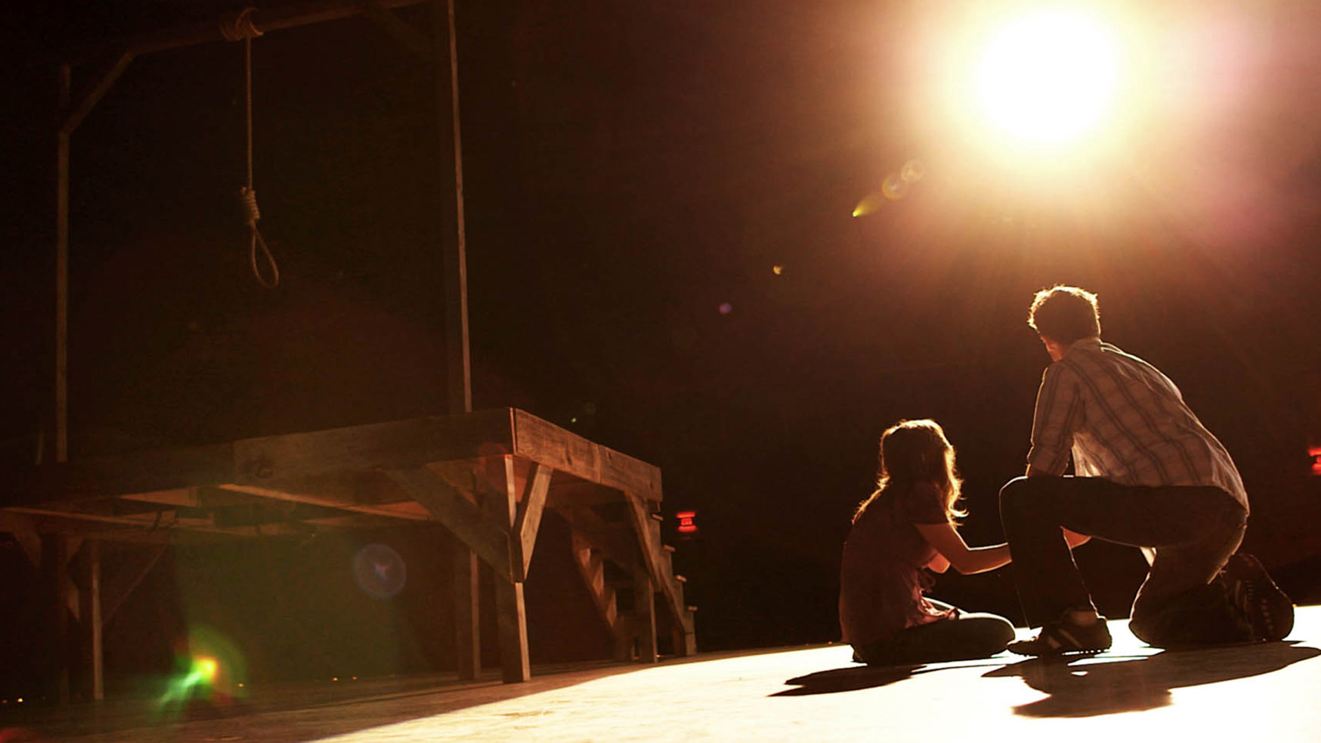 The Gallows opens in October 1993, with a roughed-up camcorder recording of a stage play at Beatrice High School in Beatrice, Nebraska, named ‘The Gallows,’ where a cast member, Charlie Grimille, has his head in a noose. Witnessing Charlie fall to a horrific and unforeseen death, the freak accident shocks schoolmates, parents and staff alike. Twenty years on and the exact same play is being revived at the exact same school, all in meticulous detail mind you, right down to the original artwork on the cover of the program. Whilst trying to honor the anniversary of the tragedy by resurrecting the failed production, everyone involved seems to be having a jolly good time, completely oblivious to the show’s grim past. As it turns out, former football star turned thespian, Reese Houser (Reese Mishler), has decided to take on the leading role in an effort to get closer to the show’s leading lady, Pfeifer Ross (Pfeifer Brown). Much to the dismay of his disappointed father, who’s upset that Reese has quit the football team, and his obnoxious friend Ryan Shoos (Ryan Shoos) — who’s recording rehearsals while ridiculing, mocking and belittling the entire cast and crew — Reese is adamant on going through with the show for the sake of his on-stage kiss with Pfeifer, even though he has no artistic talent at all and kind of stinks.