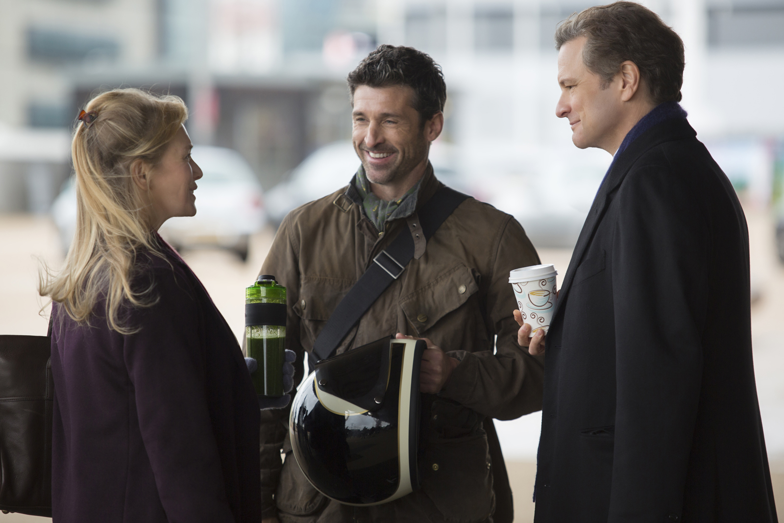 Bridget Jones’s Baby starts off in traditional Bridget fashion, Jones celebrating her 43rd birthday alone on the sofa with a glass of bubbly, listening to the sorrowful sounds of Jamie O’Neal’s ‘All By Myself.’ That’s until she flips to House of Pain’s ‘Jump Around’ and does her best Lip Sync Battle piece, literally bouncing about in her shoebox apartment — and just like that, Bridget is her old self again, well kinda — she’s more of a spinster or a Spilf now, one who’s not looking for all of life’s solutions in a man. See, a lot has changed since we last saw our clumsy starlet — she and Mr. Darcy are no longer an item and Daniel Cleaver isn’t around, this leaving Bridget single to mingle, our protagonist focusing on friendships as opposed to relationships and her job as a top news producer for a show called Hard News. Lo and behold, Bridget’s fortune takes an madcap turn when she meets a handsome American named Jack Qwant (Patrick Dempsey) at an outdoor Coachella-like music festival, the pair partaking in a ‘drunken roll in the hay’ so to speak. A week later, Bridget finds herself face-to-face with Mr. Darcy at a friend’s christening, where she learns of his separation from his elegant wife. After a bit too much ‘Gangnam Style,’ the duo ends up spending the night together in a nearby hotel room. Next thing you know, Bridget’s ‘knocked up,’ and while she’s thrilled about the prospect of having a little one, she has no idea who the daddy is — Could it be the dashing McDreamy or stubborn McDarcy?