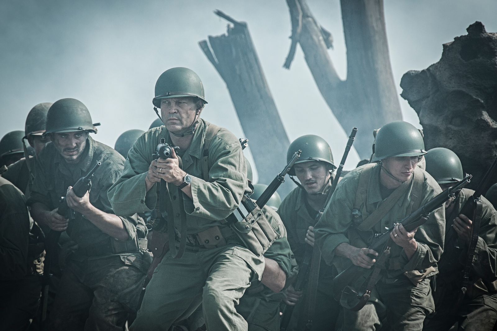 The final stem of the movie — and quite possibly the weightiest — zeroes in on the horrors experienced by Doss and the Infantry outfits (the 77th and 96th) ordered to partake in the assault and capture of the Maeda Escarpment in the spring of ’45 — a steep cliff-like terrain known as Hacksaw Ridge, the land given the name for its rough sawed-off appearance. Atop this monolithic 400-foot rock-face waited a sea of unswerving Japanese soldiers, most of whom were hiding out in complex networks of caves and tunnels, along with heavily fortified machine-gun nests and explosive mortars — victory, a near-impossible feat.