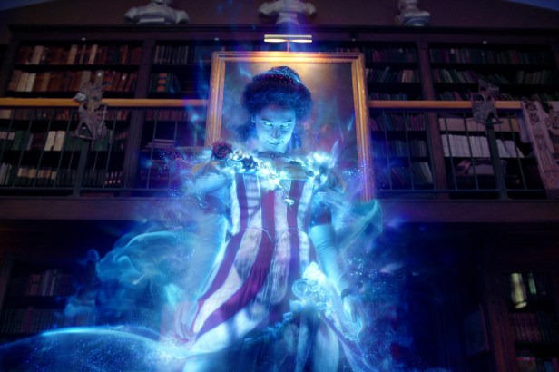 In order to ensure that Columbia University’s dean, Harold Filmore (Charles Dance), doesn’t find out about her previous escapades, Erin tracks Abby down to ask her to take the paperback off the site. As it turns out, Abby is still chasing spectral activity and has since teamed up with an eccentric nuclear engineer, Jillian ‘Holtz’ Holtzmann (Kate McKinnon). However, when Erin ends up mentioning the Aldridge Haunting, the ladies opt to inspect the manor, where they come face-to-face with the spirit of the murderous Gertrude Aldridge (Bess Rous).