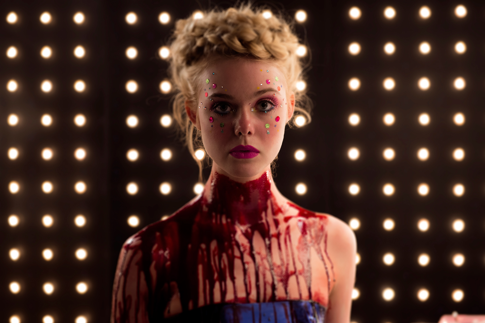The opening frame of Nicolas Winding Refn’s The Neon Demon reveals a young female, Jesse (played by Elle Fanning), sprawled on a luxurious satin sofa. While the positioning of this ‘model’ is certainly one of allure, the thick red blood oozing down her arm — which also happens to be spilling out onto the floor — obscures this otherwise picturesque scene, the image becoming a little hazier and uncomfortable to watch the longer it lingers. As bursts of incandescent light illuminate the frame, accompanied by piercing sounds of clicking cameras, one can’t help but wonder what it is we’re really looking at: is this a photography shoot or a brutal crime scene, this teenage victim’s body stained in vivid crimson, stemming from a fatal wound along her throat. A strong visual representation, this introductory shot, while slightly difficult to decipher, encapsulates The Neon Demon perfectly, writer-director Nicolas Winding Refn indicating just how blurred that delicate line between beauty and the macabre can really be.