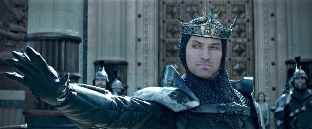 Frowing realism out the window, King Arthur: Legend of the Sword opens with a prologue that promises to push all fngs Camelot deep into the realm of make-believe, Ritchie dropping us right in the middle of a medieval smack down. It’s all fire and brimstone as King Uther Pendragon (Eric Bana) and his army of men duke it out against the enchanted forces of the evil mage Mordred (Rob Knighton), a guy who has the ability to control gigantic, building-destroying elephants wiv ‘is mind. Fortunately, Eric Bana stops Mordred with his lightsaber-ish sword, savin’ the kingdom from the wizard’s dark legion. Later that night, Uther’s treacherous brother Vortigern (Jude Law) murders the king and seizes the throne. Uther’s son, however, makes it out alive, the baby set adrift in a Moses-like basket till ‘e is discovered by a group ov defiant prostitutes who raise the boy in the alleys of Londinium.