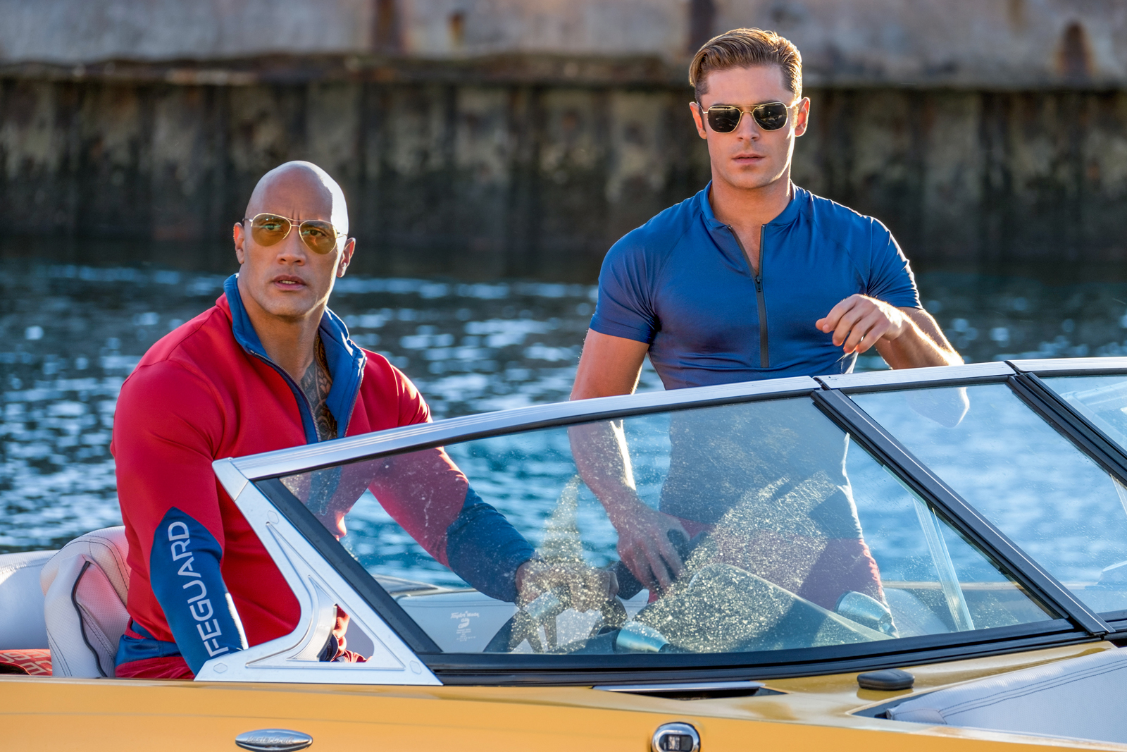 Trading Malibu, California, for Emerald Bay, Florida, the story follows Mitch Buchannon (Dwayne Johnson), the overzealous leader of an elite Broward County lifeguard squad known as Baywatch — now here’s a man who takes his job (and team) far too seriously. Mitch’s world, however, is rocked to its very core when he’s forced to enlist Matt Brody (Zac Efron), an arrogant washed-up Olympic Gold medalist, as the new face of ‘Baywatch,’ this young gun brought in to restore the sinking brand, a PR stunt set in motion by Captain Thorpe (Rob Huebel), the group’s supervisor. While the no-nonsense Buchannon and the rambunctious upstart initially butt heads (and pecs), the two are forced to put their petty ‘macho man’ rivalry aside when a dead body is discovered in their precinct — the seaside! Now, to protect the bay, Mitch and Brody — along with their team of highly sexed lifesavers — must become the defenders of the sand and surf, their investigation leading them to a drug smuggling operation headed by suspected criminal ‘big fish’ Victoria Leeds (Priyanka Chopra), who happens to be the new owner of the high-status beachfront resort, the Huntley Club.
