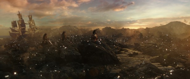 Rambunctiously directed by Norwegian duo Joachim Rønning and Espen Sandberg, Kon-Tiki (2012), Dead Men Tell No Tales hits enough high-flying notes to keep the swashbuckling adventure afloat, this fifth Pirates outing delivering some of the most satisfying stunts and set pieces of the year (so far). There’s a audacious first-act escape that features one of the wildest uses of a guillotine to date, and a show-stopping sequence where Salazar and his (wonderfully realized) army run on water as they attempt to catch our protagonists who, by the way, are being tailed by a bunch of decaying zombie sharks. And this is before the VFX heavy finale, in which the ocean parts like the Red Sea in 1956’s The Ten Commandments, with our heroes fighting for the trident amongst the exposed Styrofoam-looking rocks and coral underneath. Heck, we’re also treated to a young Jack Sparrow, thanks to some nifty CGI work similar to that used in Guardians of the Galaxy Vol. 2 (2017), where we saw a de-aged Kurt Russell up on screen. Moreover, cinematographer Paul Cameron, HBO’s Westworld (2016), does a wonderful job capturing several parts of Queensland, Australia, and the Whitsunday Islands, where the bulk of the movie was shot.