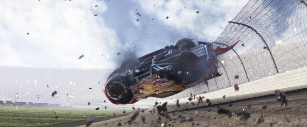 Admittedly, I find that the whole Cars universe really doesn’t work, its blatant implausibility just downright distracting; here’s a world clearly manufactured for humans yet inhabited by automobiles — why are the cars even fitted with seats? Regardless, Cars 3 sticks to this pre-established (often head-scratching) groundwork, the film staying true to the rules ironed out by Lasseter and his whizz-kid team of artists back in ’06. So I can’t really fault this third chapter when certain elements make little logical sense — how do the cars hang up picture-frames or posters, for instance? Or how do they put on headsets? All of this befuddlement aside, Cars 3 burns some pretty serious rubber.