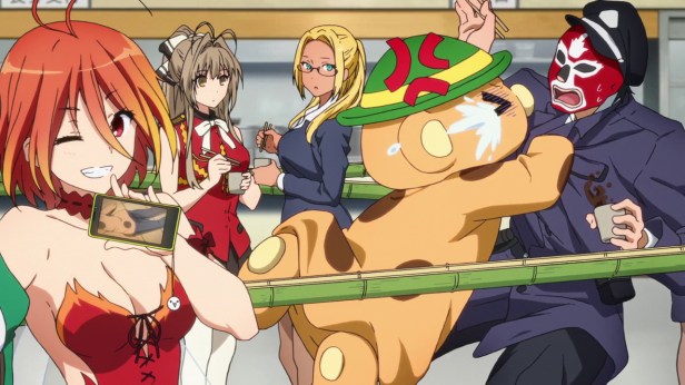 Though episodic in structure, with the overarching narrative moving ever-so-slowly in the background, Amagi Brilliant Park is inventive to a tee; the obligatory ‘beach trip’ has been replaced by a wet-n-wild pirate escapade, our heroes forced to deal with a bunch of charmed swashbucklers wreaking havoc around the pool attraction, while an episode that sees the over-worked Seiya ‘too sick to go to school’ emerges as an apex, the freed-up park personnel obliged to don a life-like suit of Seiya and attend class in his stead, each character causing a whirlwind of (unintentional) commotion for our bedridden boy wonder. My favorite eps, however, are the riotous OVA, which revolves around Seiya’s birthday, where a bunch of ill-timed mishaps threaten to foil his surprise name-day bash (amongst other things), and the OVA-like episode 13 — which takes place outside of the main storyline — centered on a promotional video that winds up being more dubious than enticing.