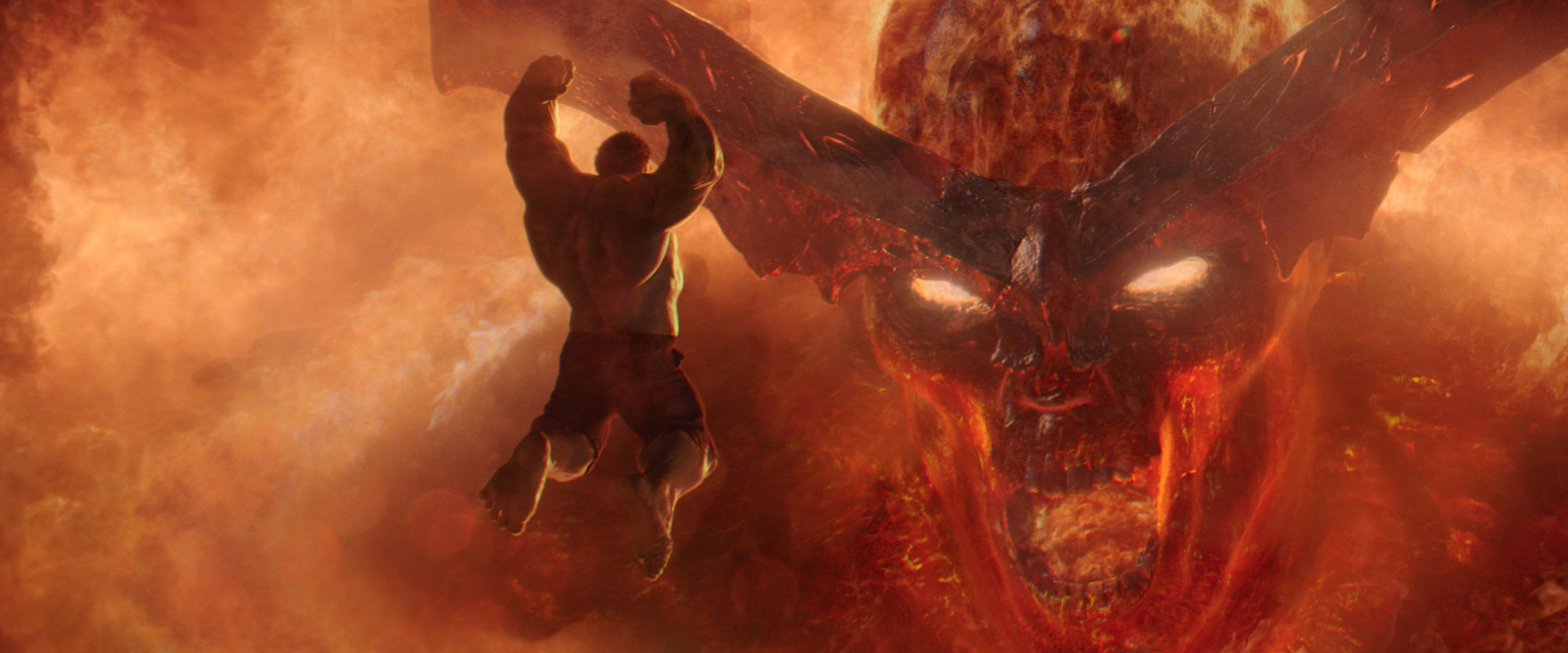 If you’ve seen any of Ragnarok’s marketing, you’ll know that Thor eventually finds himself without his magical hammer (Mjöllnir), Hela making short work of ‘Goldilocks’ and ‘Reindeer Games’ while traversing through the multicolored Bifrost beam. Running her hands through her silky black hair and revealing her antler-esque headpiece, Hela lays waste to all of Asgard’s armies, the catsuit-clad vileness seizing the Asgardian throne. Now, with her enemies eliminated, the ruthless Hela sets out to usher in a new era of cold callousness for the Nine Realms and the universe at large. Thor, in the meantime, finds himself prisoner on the retro-heavy Sakaar, a distant junkyard of a planet that thrives on indulgence and chaos. Ruled by a gilded dandy known as the Grandmaster (Jeff Goldblum at his Goldblum-y best), Sakaar also happens to be the home of a cosmic gladiatorial contest, Thor forced to defeat the arena’s hulking green champion if he wishes to escape the trash heap and return to Asgard to try and liberate its people.