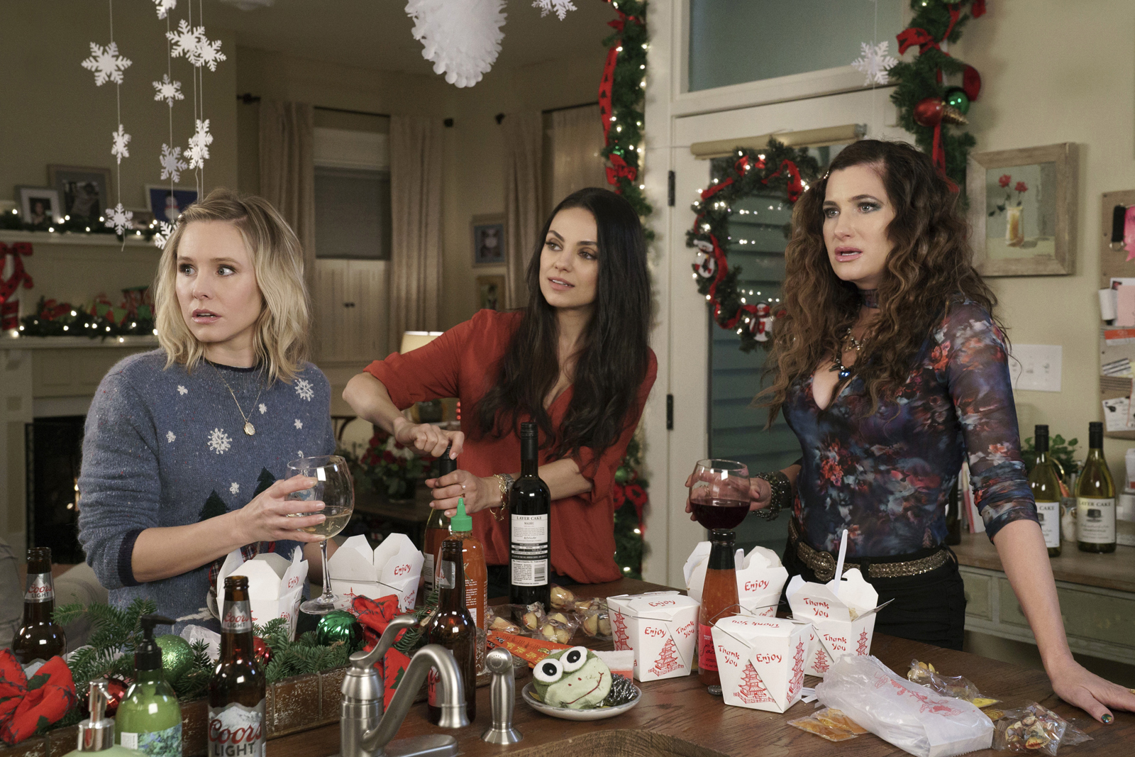 Bad Moms 2, or A Bad Moms Christmas (depending on which part of the world you reside), sees our favorite trio of over-worked, under-appreciated mothers — Amy (Mila Kunis), Kiki (Kristen Bell), and Carla (Kathryn Hahn) — who, in 2016’s Bad Moms stuck it to the man, try to reclaim Christmas, Kunis’ strained ‘n’ drained Amy plaintively reminiscing with her over-committed gal pals, ‘remember when the holidays were actually fun?’ this remark prompting the rebel mommies to take back the Most Wonderful Time of the Year; and it’s jovial R-rated shenanigans from thereon in, with our loose ladies getting drunk in a shopping mall food court then dirty dancing with a department store Santa, all before running rampant whilst purchasing (or pilfering) trees and presents. And if the everyday pressures of the festive season weren’t already enough — the burnt-out women feeling like ‘giant stress balls’ cooking, wrapping, cleaning and decorating all December long — the arrival of each of their over-bearing mothers was surely going to push them over the edge, the flick pitting two generations of bad mothers against one another.