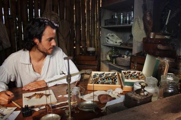 The central performance by Calum Finlay, A Midsummer Night’s Dream (2016), is frankly amateurish. Sure, he’s clearly game to be amongst the weathered elements and unpredictable wildlife, but he feels like a buddy of the director who wanted to star in a movie and is never quite convincing. It doesn’t help that the script calls for him to speak his mind out-loud in pantomime-like astonishment. It’s probably on-point for young students, whom this sort of film is really intended for, but anyone older is likely to roll their eyes. While Finlay isn’t around for long, Ed Birch, Their Finest (2016), tends to get the tone right as Bates’ friend and fellow researcher Alfred Russel Wallace, while Robert Daws, The Unfolding (2016), looks the part as Charles Darwin.