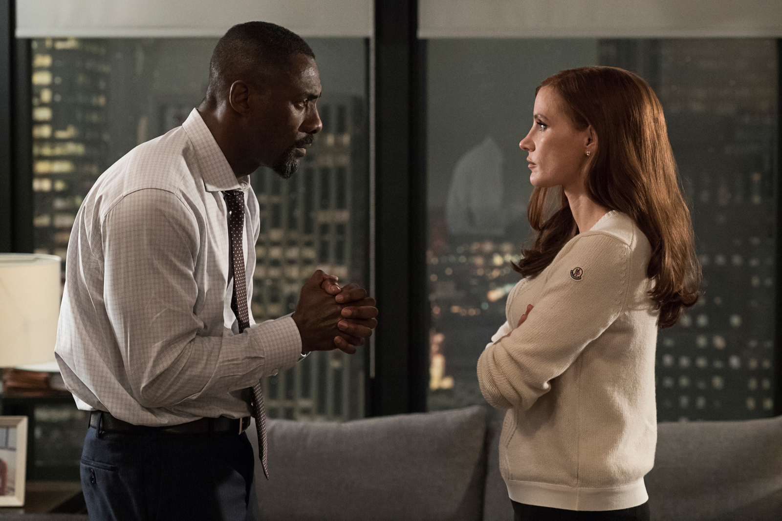 Inspired by Bloom’s 2014 exposé memoir, which shares the same name as the film, Molly’s Game jumps back and fourth through time, between her efforts to persuade (fictitious) New York criminal defense lawyer Charlie Jaffey (Idris Elba) to represent her in court — after being arrested late one night by the Feds on charges of racketeering — to the intervening years, where viewers learn just how this smouldering redhead built herself up to become a clandestine gambling goddess. We’re also given glimpses into Molly’s youth as an eager Olympics-bound skier, who was trained and pushed by her aggressively overbearing therapist dad, Larry (a very solid Kevin Costner).