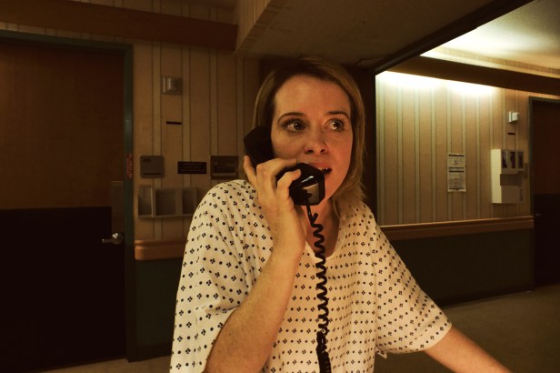 Written by James Greer and Jonathan Bernstein — the guys who umm … wrote Jackie Chan’s secret-agent family comedy The Spy Next Door (2010) — Unsane opens with an eerie male voice-over over an inky-blue night-vision landscape, these disquieting words belonging to guy named David Strine (Joshua Leonard), whom we eventually learn is a stalker. Having become obsessed with a volunteer nurse, Sawyer Valentini (Claire Foy), while she was caring for his sick father in Boston, David developed an unhealthily fixation with the way she made him feel, chiefly after his dad passed away, his scary one-sided affection ultimately driving her out of the state. Traumatized by the experience, we meet the jittery Sawyer as she’s making a new life for herself in Pennsylvania, working as a data analyst for a big firm in the city, even though she’s still shaken-up by her painful past. Away from the office, there’s not much going on in Sawyer’s life, bar the occasional FaceTime chat with her mother Angela (Amy Irving), who’s missing her back home, and a few cautious no-strings-attached Tinder dates.