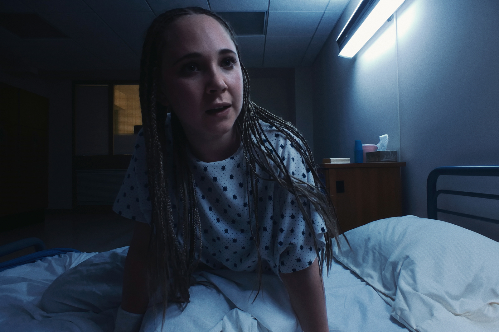 Although two years have passed since the hellish ordeal, Sawyer still remains much very on-edge and guarded, our protagonist deciding to go see a therapist at the Highland Creek Behavioral Center for some treatment. After telling her story and filling out some paperwork, Sawyer is asked to hand over her personal belongings then strip, being told that she’s going to be detained and observed for a period of 24 hours, this due to an offhand comment she made about committing suicide. Sawyer freaks out (as you would) and is forced to spend the night in the ‘loony bin’ where she meets the tampon-tossing Violet (Juno Temple) and a savvy opiate addict named Nate (SNL’s Jay Pharoah). Once Sawyer catches sight of a facility orderly whose tag reads ‘George Shaw,’ she loses the plot and slaps him, Sawyer convinced he is her stalker David using another name. Now, with her sentence being extended for another seven days and doctors questioning her sanity, Sawyer must try to convince the staff that she’s telling the truth without sounding as deranged as any of the other inmates. But, are her fears actually real or are they simply just a product of her own chilling delusion?