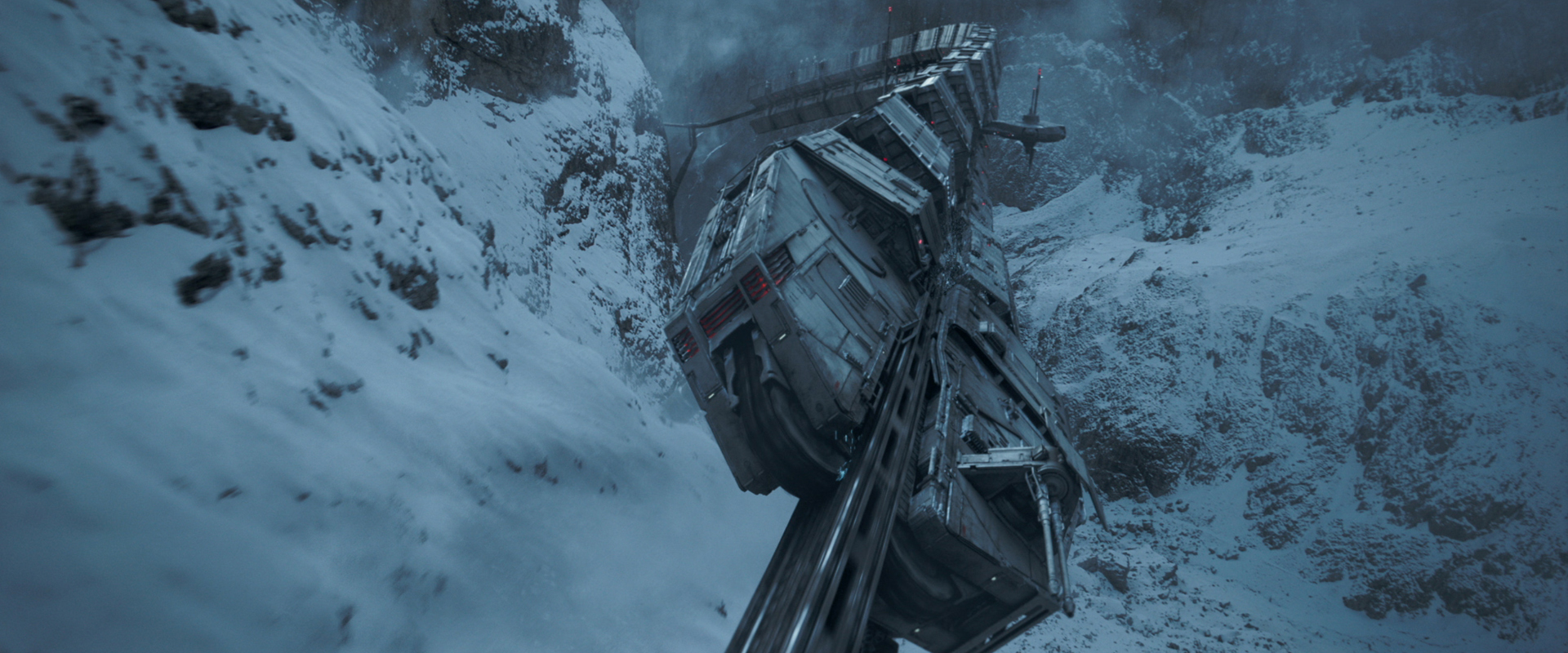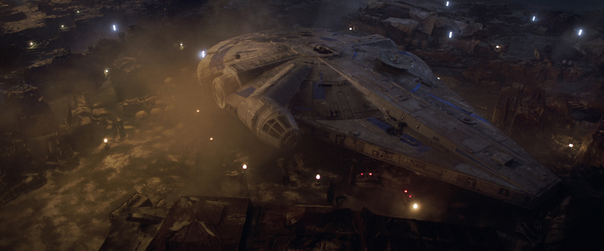 In addition, viewers are also treated to a handful of epic space opera beats — this is Star Wars, after all — the highlight being a dogfight between a pack of angry TIE fighters and the fastest hunk of junk in the galaxy (the Millennium Falcon), which takes place inside the perilous Maw Cluster (located near Kessel), an unstable and mostly unnavigable gathering of black holes surrounded by dangerous anomalies such as stellar debris and plasma clouds, this Outer Rim territory where Han eventually makes his iconic ‘Kessel Run’ in under 12 parsecs.