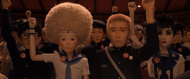 Meanwhile, back in the city, American exchange student Tracy Walker (Greta Gerwig) is slowly building a revolution of sorts to expose the Mayor’s darker nature, Tracy intent on bringing the dogs back into Japan, this by way of a cure to the virus, which is being developed by a scientist, Professor Watanabe (Akira Itō), in a retro-looking lab. As both Atari and Tracy itch closer towards the truth behind the rather harsh canine banishment, Mayor Kobayashi deploys all of his forces to try and crush the rebellion.