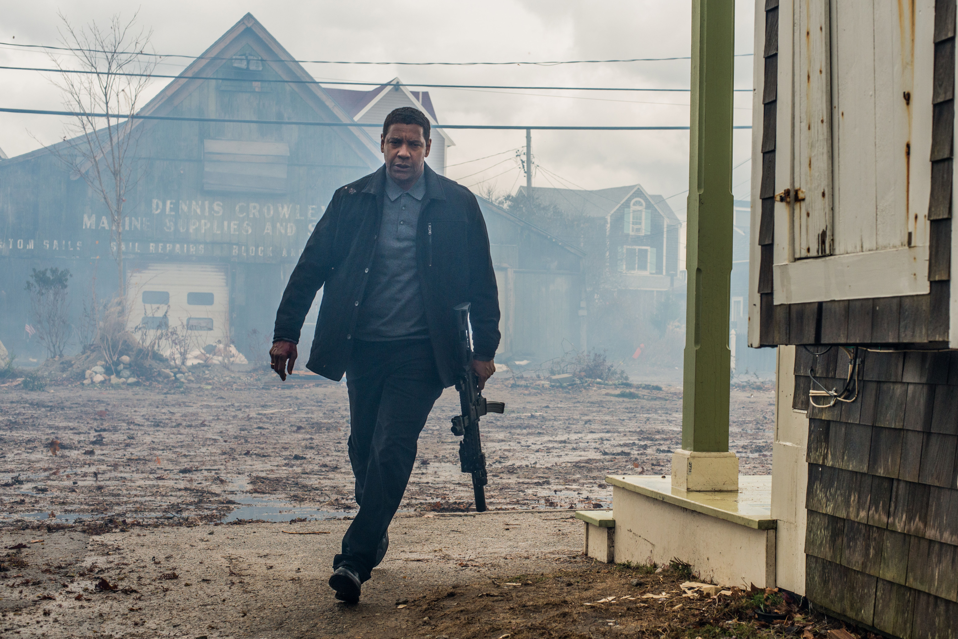 All of this is intercut with extracts of a grizzly killing that takes place across the sea, in Brussels, Belgium, McCall’s onetime handler and closest friend, DIA big-wheel Susan Plummer (Melissa Leo), called in to investigate the apparent murder-suicide of a man and his wife, aided by her colleague Dave York (Pedro Pascal), McCall’s ex-teammate. It’s this brutal execution that paves way for the film’s central conflict, which does take a while to get going, the story ultimately taking McCall on a painful path back to his seaside hometown, which is being evacuated due to a pending superstorm, the dude having to wade through a whirlwind (quite literally) in order to find peace and resolve.