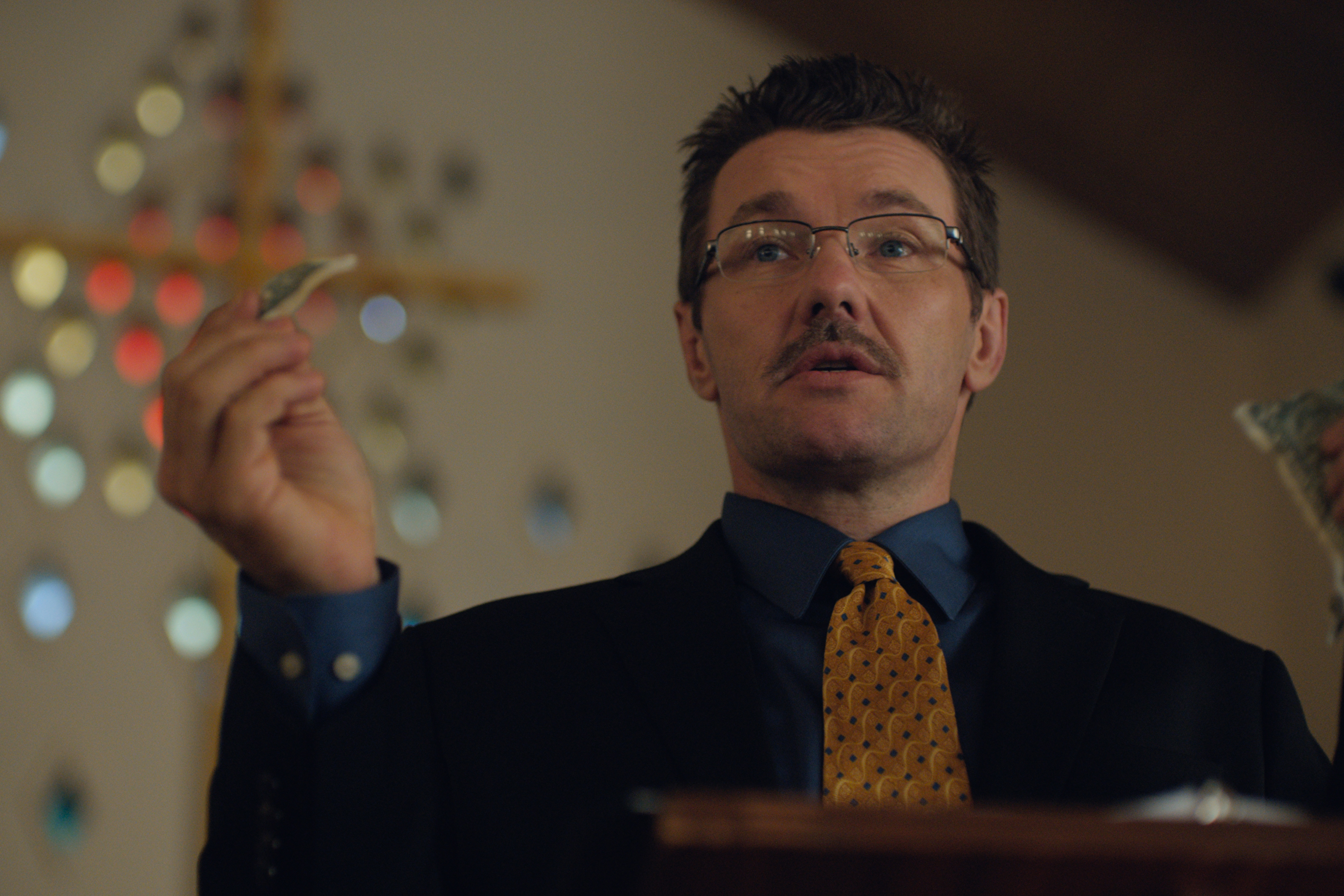 It’s intriguing to note that if the above-mentioned ‘bible-bashing’ is even a partial invention, then, as touched on earlier, there is a sorely missed dramatic opportunity elsewhere in developing the on-screen relationship between the father Marshall and son Jared. They don’t get as much time together as you’d think and perhaps it’s part of the point with the father seeking an easy fix to what he views as something that’s simply broken. If their little time together does reflect reality, then it’s an area that could have done with some fictional elaboration, drawing out more from Marshall as he wrestles within his family, the community and himself. The resolution of the father-son relationship hinted in the trailer summarizes a great journey for Marshall, but we are never witness to it.
