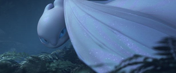 To lure Toothless into his trap, Grimmel uses a female Night Fury (dubbed Light Fury by Astrid due to the she-dragon’s shimmering alabaster coat) to separate the alpha from his pack, and after their brief first encounter in the woods, Toothless is instantly drawn to her. Eventually, Hiccup agrees to go out and help his dragon friend search for the mysterious dragoness, only to discover that their colony may be in immediate danger if they don’t move to a safer, more secure place — and pronto. Recalling the sea-faring legend about the ancestral home of all dragons told to him by his father, Hiccup proposes that all of Berk relocate there, and thus sets out to find this elusive ‘hidden world,’ which is said to be stationed at the edge of the earth — because, hey, it’s flat, right?