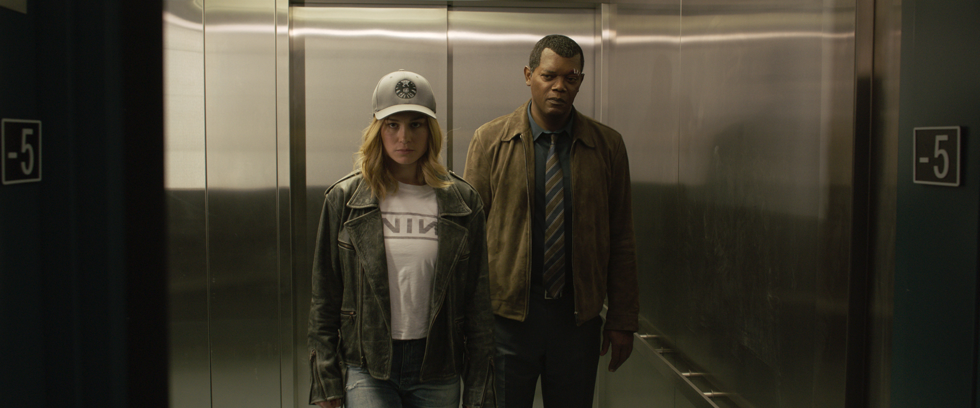 After a risky extraction-mission goes awry — where Starforce are ambushed by a bunch of Skrull warriors, led by Talos (Ben Mendelsohn) — Vers is separated from her team, plummeting down to Earth, Los Angeles in 1995, crashlanding in a Blockbuster Video Store (coz nostalgia). Stranded, Vers must remain on the planet until she’s joined by Yon-Rogg, despite being perused by Talos and his pesky assassins, and questioned by Samuel L. Jackson’s S.H.I.E.L.D agent Nick Fury (who’s got both his eyes and a full head of hair). Employing the de-aging technology that was used to make Kurt Russell look younger in Guardians of the Galaxy Vol. 2 (2017), and refined even further on Michelle Pfeiffer and Michael Douglas in last year’s Ant-Man and The Wasp, Jackson (who’s now 70 years old) looks about 40 here, as if he’s walked off the set of 95’s Die Hard with a Vengeance, this making the guy the movie’s most impressive special effect! Anyhow, with Vers stuck on Earth, or Planet C-53, memories start flooding back of another life as a tough Air Force pilot named Carol Danvers, these flashes suggesting that she may have visited this ‘strange’ place before, and may not be the person she thinks she is.