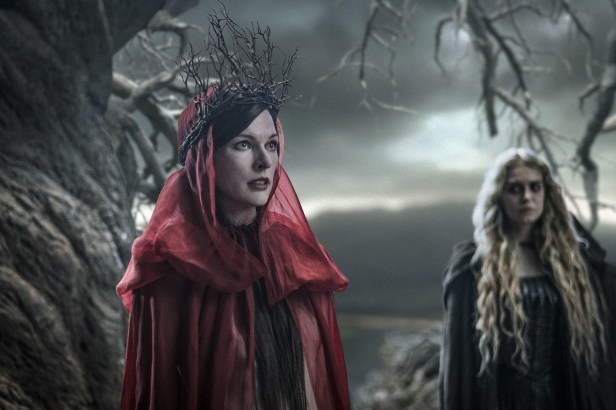Penned by telly writer Andrew Cosby (who, all things considered, has done an okay job), the picture opens with a stylized black-and-white prologue set during the age of King Arthur — and the introductory shot, of a crow, ferociously tearing out the eyeball of a rotting corpse, more than sets grim the tone. It’s here, up on Pendle Hill, where we learn that fifth-century sorceress Nimue, the Blood Queen (Milla Jovovich), and her army of mythical creatures, is preparing to unleash all sorts of apocalyptic chaos onto mankind until she’s viciously betrayed by her coven, dismembered (quite graphically) by Merlin (Mark Stanley) and King Arthur (Brian Gleeson), who scatter her severed remains across Europe. Granted, we’re given a ton of exposition, narrated by Ian McShane’s Trevor Bruttenholm, aka Professor Broom, which does, unfortunately, feel awfully rushed — there’s almost too much to wrap one’s head around.