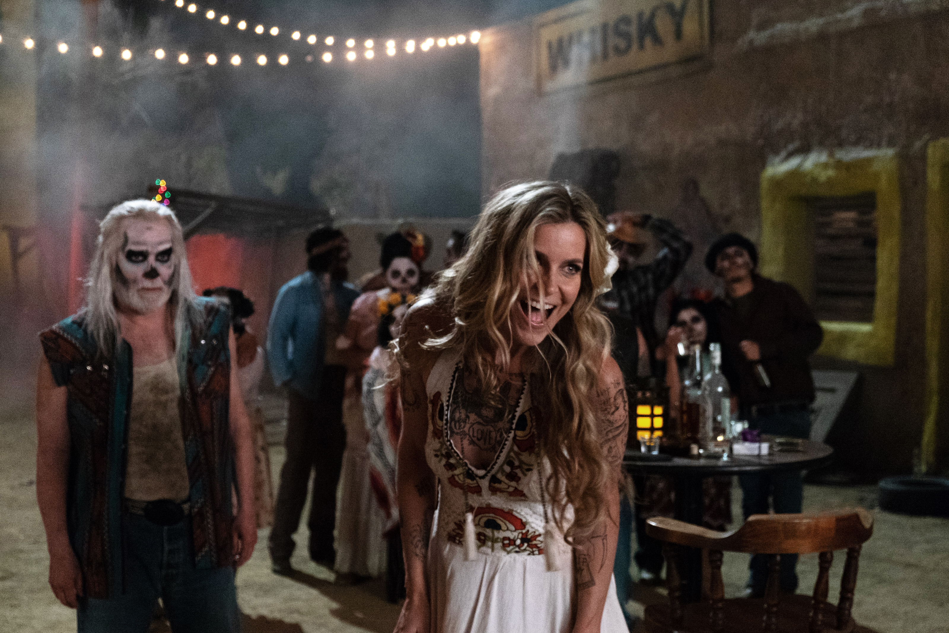 Baby, however, is still stuck behind bars, where she’s being tormented by a butch-y guard, Greta (an unrecognizable Dee Wallace), who’s made it her mission to try and ‘break’ the blonde serial killer. Eager to free their kin — so that she can join them for more callous fun — Otis and Foxy hatch a plan to get their beloved Baby out of the slammer, and before long, the three are reunited once again. On the run and out of options, the fugitives set their sights on Mexico, where they’re unaware that they’re being hunted down by a dangerous local gang known as the Black Satans. Hellish butchery is about to ensue.