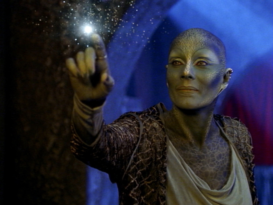 Even the more human-looking characters were given enough points of difference to make them unique from their genre-mates. Among the Moya mob we got Ka D’Argo (Anthony Simcoe), a hulking Luxan warrior banged up for killing his wife (he didn’t do it), whose distinctive appearance and genuinely unpredictable temper and cultural mores prevented him from being just another re-skinned Klingon (he also had a prehensile tongue like a frog). Meanwhile, plant-lifeform Pa’u Zotoh Zhaan (Virginia Hey) is a blue-skinned empath and spiritual leader, who is also considered a dangerous terrorist by her people. Then there’s chaotic thief Chiana (Gigi Edgley), introduced in episode 15, ‘Durka Returns,’ a kind of manic pixie space rogue who is on the run because she rebels against her species’ devotion to the greater good — an individualistic streak that makes her a rather untrustworthy crewmate.
