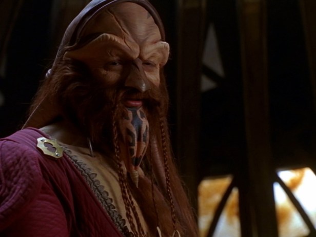 Two characters were just straight-up puppets: deposed regent Rygel XVI (voiced by Jonathan Hardy), a short, arrogant conniver given to farting helium in moments of stress; and Pilot (voiced by Lani Tupu), Moya’s symbiotic helms-alien and crew liaison. Other completely non-human aliens also abounded, which was a pleasant and notable change from the almost entirely humanoid extraterrestrials populating other series (coughstartrekcough).
