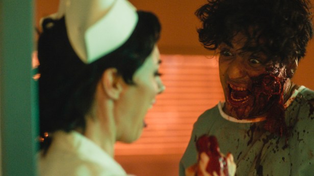 Support comes from a roster of actors who should be familiar to fans of Canuxploitation and the Soska oeuvre in particular; Stephen McHattie, Watchmen (2009), cameos as the original film’s Dr. Keloid, while Mackenzie Gray, Legion (2017-19), gets to be flamboyant and bullying as fashion designer Gunter. Phil ‘CM Punk’ Brooks gets a short, fun moment as one of Rose’s victims, and Tristan Risk, American Mary (2012), turns up, briefly, as a nurse who cops the bad end of the growing epidemic.