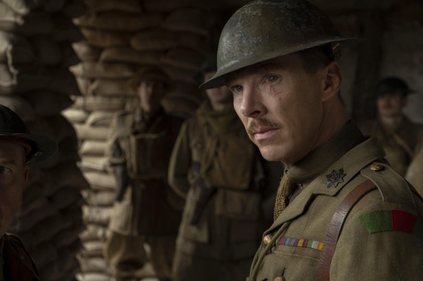 Schofield collapses against a tree and finds the bone-weary 2nd Devons singing the traditional song ‘Wayfaring Stranger.’ Like a hymn in a verdant forest setting with church-like majesty, the tune is a prayer in its intensity. As the young soldiers march unknowingly towards their deaths, he runs again to find Colonel Mackenzie (Benedict Cumberbatch). Pushing his way past men poised to go over the top and straight into the German trap, the urgency of his mission keeps the audience on tenterhooks as he travels through the sea of dead, dying, or soon to be slaughtered.