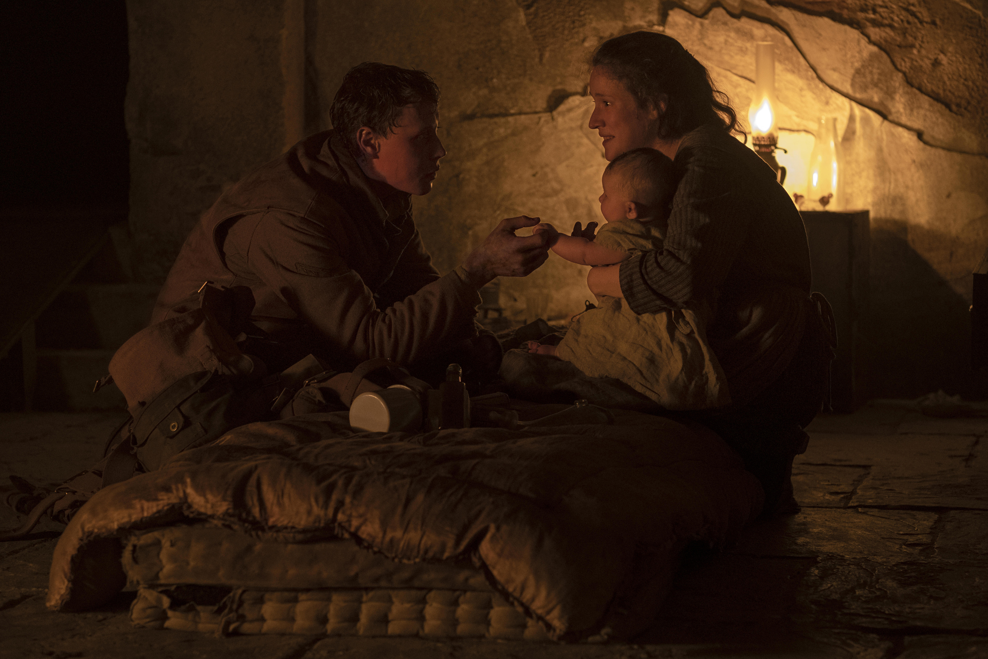 Scofield meets a terrified young woman, Lauri (Claire Duburcq), in the embattled French town of Écoust. The German occupation has left her caring for an orphaned infant girl. Lauri and Scofield communicate in a mixture of broken English and French, with him reassuring her that he will not hurt her or the baby, but to her, he is a man with a gun — uniforms have long since lost their meaning to her; Allied or German, all men are a threat. Although tonally the scene runs to melodrama, scriptwriter Mendes and co-writer Krysty Wilson-Cairns, Penny Dreadful (2014-16) cleverly weave in the Edward Lear nonsense poem ‘The Jumblies’ that Schofield recites to the infant. It’s a tender and exquisitely melancholic moment that resounds in profound humanity. The three form a small family momentarily, sheltering from the maelstrom around them.