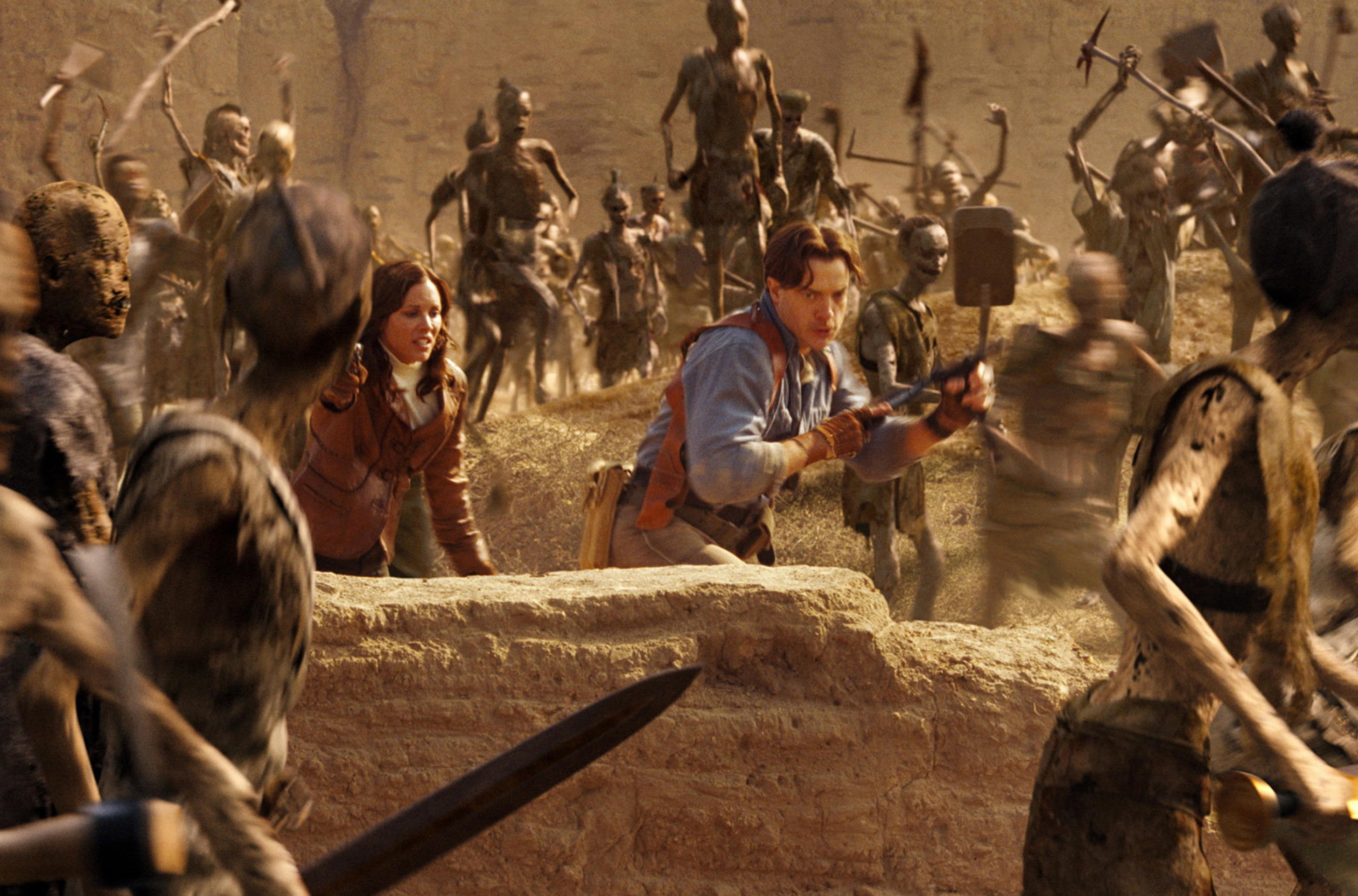 On the action front, there’s an excellently choreographed horseback and chariot pursuit through the streets of Shanghai, ending in a disorderly fireworks display, and a nifty mid-movie scrap atop the Himalayas, where a group of digital Yetis assists our heroes. However, the highlight is an expensive-looking third act clash at the Great Wall, where Han’s computer-generated terracotta troops battle it out against a CGI army of the undead, commanded by the reanimated General Ming. And in true Mummy fashion, we’re hit with a host of creepy supernatural beasties, including a gnarly three-headed dragon — no rubber-mouthed mummies this time around, though.