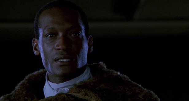 So yes, the film’s darkly romantic take on stalking and violence is troubling but rooting the villain’s genesis in an act of horrific racist violence leavens it somewhat — it’s hard to blame the guy for having an ax — or indeed, a hook, to grind. There’s also the interesting implication that free will may not be too big a factor in what’s playing out before us: by invoking the Candyman, Helen has set in motion a reiteration of his myth that must play out according to a set pattern; he will be a monster, she will be a victim, the Cabrini-Green community will stand witness and tell his tale anew.