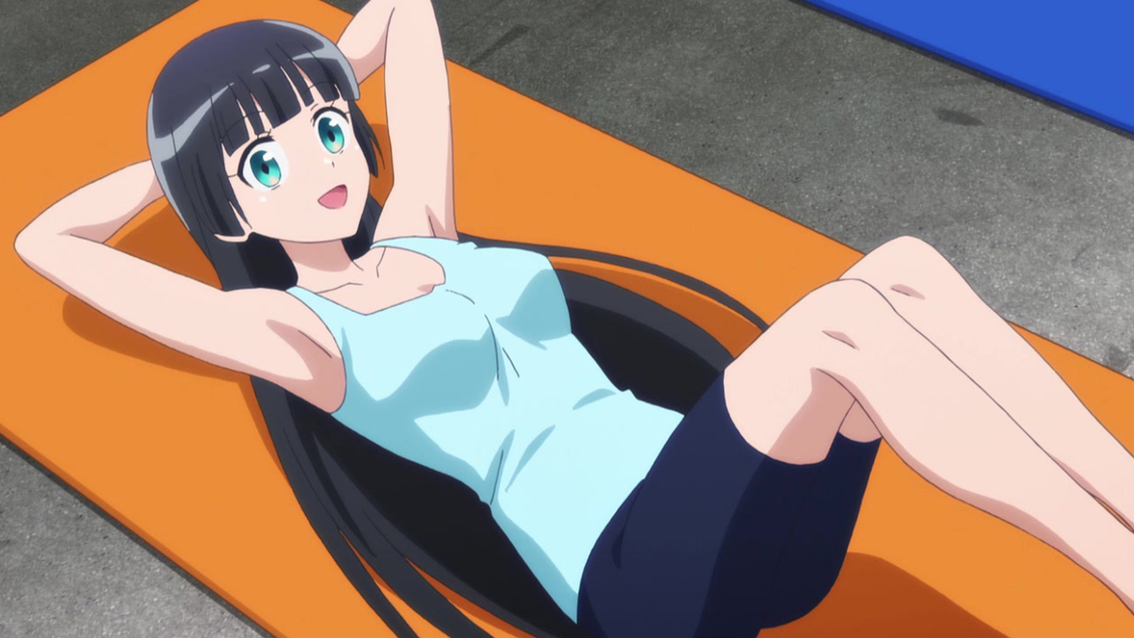 Produced by animation house Doga Kobo, and zestily directed by Mitsue Yamazaki, Monthly Girls’ Nozaki-kun (2014), How Heavy Are the Dumbbells You Lift? is bursting with energy, color and creativity. And, honestly, it has such strong production values — think solid animation and attractive artwork — for a series predominantly focused on cute girls doing squats and bench presses while showing off their curves, and beefy dudes, built like a fridge, dropping power moves to flaunt their tight pecs and biceps. What’s more surprising, however, is just how little lewdness is found here, with shenanigans like boobie bongo absent from the action — it has mild sexualized imagery at best.