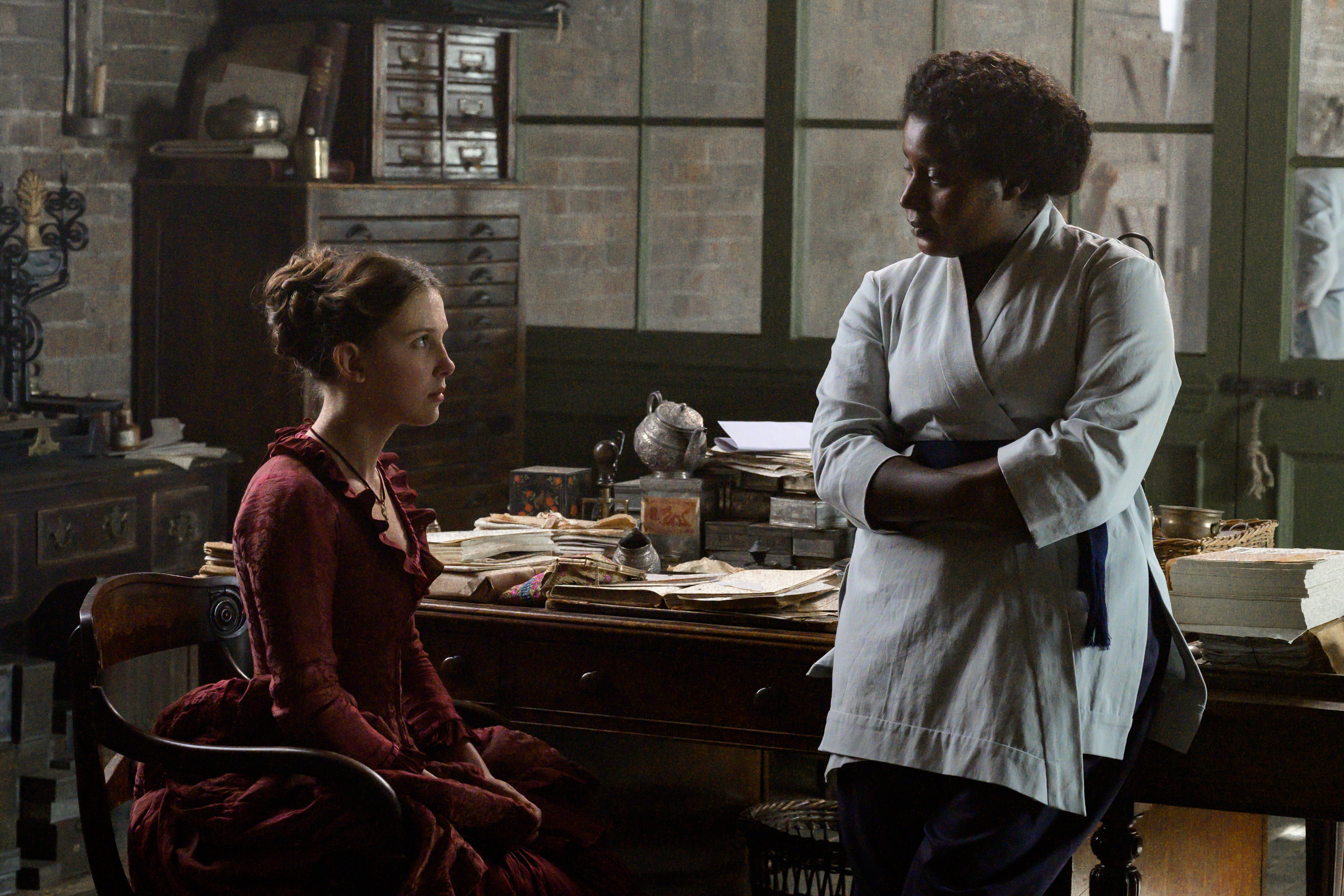 Sitting behind the action of the film is the 1884 Reform Vote, which worked to extend the rights of voting to the common man, not just landowners. Being the Victorian era, the idea of suffrage for women is in its infancy and very much a fringe idea, and according to many, a seditious one. The backbone of the narrative is feminist. Eudoria has taught Enola she can be anyone, yet society and, by extension, her deeply conservative brother Mycroft (in the film played as the least intellectual and talented Holmes sibling) are fiercely against changes that extend power to the working classes and women. Enola is a fish out of water in more ways than one when she reaches London. Having spent her life in the haven of Ferndell Hall, she is ill prepared for the mayhem of the metropolis, and her naiveté about how to negotiate the city is at odds with her inherent cleverness and wit.