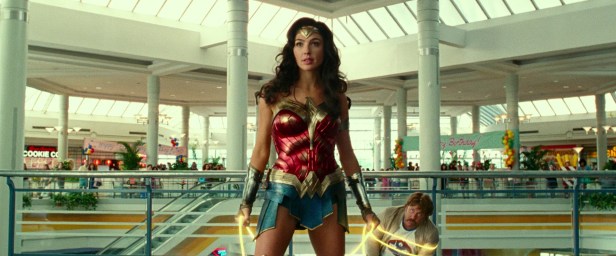 We then cut to 1984, in all its retro glory, where we see the excess and capitalism of the ‘me’ decade in a zippy little montage featuring old-school hairdos and fashion (think shoulder pads, high waist/ parashot pants, Walkmans, etc.). Filmmaker Jenkins doesn’t waste much time, as we’re then quickly re-introduced to Wonder Woman (Gal Gadot) via a ‘cute’ fight sequence in a packed shopping mall (of all places) where she stops a quartet of thieves from robbing a jewelry store, this small-scale clash instantly indicating that this is going to be a very different film. This heist leads to the discovery of an ancient citrine artifact with magic powers known as the Dreamstone, a gem that’s able to grant the wishes of anyone who touches it. But there’s a catch: the stone simultaneously gives whilst taking away à la W. W. Jacobs’ The Monkey’s Paw, where each wish has a specific consequence.