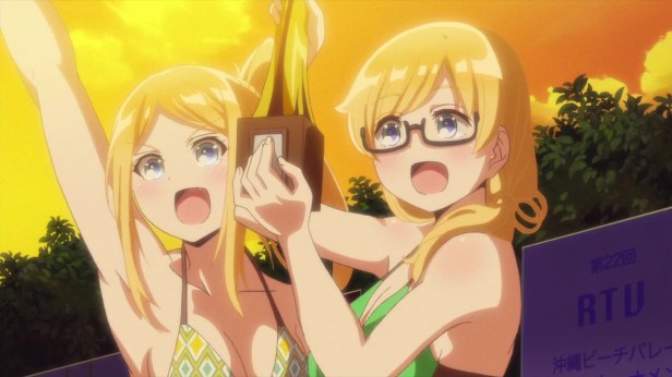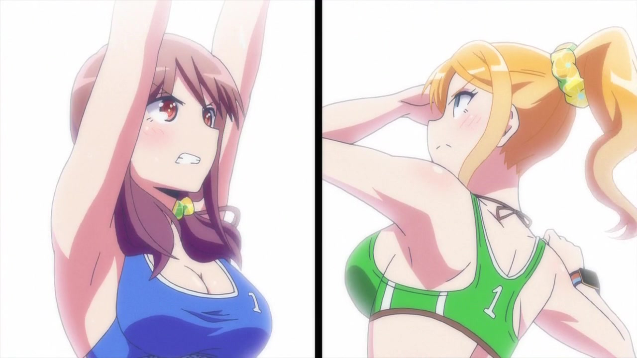 Thus, we are introduced to ‘Team Eclair,’ two of the top junior beach volleyball players globally. This team comprises American exchange student Claire Thomas and her younger twin-sister Emily (who can be identified by her thick, black-rimmed glasses). Blonde, blue-eyed, and babelicious, Claire and Emily bring cheek and bounce, the sisters constantly bickering due to their conflicting personas. Claire is carefree and fun-loving while Emily is sensible and reserved, the latter continuously subjected to her sister’s childish antics. The fair-skinned Thomas twins are probably the most memorable characters in the series. Then, there’s Akari Ōshiro, a pop idol and TV commercial actress who dreams of becoming a beach volleyball star one day. A traditional tsundere-type character, Akari lacks the skill to play pro ball but has the stamina and endurance because of her work as a singer/ performer; therefore, she becomes a quasi-manager for the Harukana and Eclair teams.