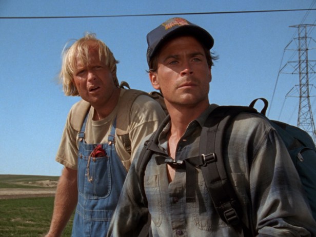 So, to the plot. Set in the then-modern world, The Stand sets about scouring it of almost all human life when a deadly superflu, nicknamed Captain Trips, wipes out most of humanity. The scant survivors find themselves drawn to one of two camps; while the good of heart, including Texan everyman Stu Redman (Gary Sinise), New York rock singer Larry Underwood (Adam Storke), pregnant teen Frannie Goldsmith (Molly Ringwald), mute drifter Nick Andros (Rob Lowe), and retired Judge Farris (Ossie Davis) find themselves drawn to Nebraska and the centenarian Mother Abigail (Ruby Dee), the evil, among them criminal Lloyd Henreid (Miguel Ferrer) and insane pyromaniac the Trashcan Man (Matt Frewer) heed the call of Randall Flagg (Jamey Sheridan), King’s oft-used avatar of pure evil, and head to Las Vegas. While the good guys work to restart civilization with good old-fashioned know-how, gumption, and pure American Baptist values, Flagg sets up a kind of Caligulan feudal state and sets his minions to firing up all the old fighter-bombers and nukes left lying around after the military lay down and died. The final battle between good and evil is on the cards.