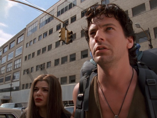 Personally, my favorite performances come from the bad guys. Corin Nemec — frickin’ Parker Lewis, for crying out loud — is pretty great as the lovelorn, self-pitying, traitorous but ultimately tragic Harold Lauder, whose pining for Frannie and resentment at the world leads him down a dark path. Even better is Laura San Giacomo as Nadine Cross, the self-loathing Mary Magdalene to Flagg’s Antichrist, all haunted and seductive, witchy, twitchy and damned. Miguel Ferrer makes some really intriguing choices as Lloyd Henreid, small-time armed robber turned Flagg’s right-hand man. Whereas in the new version, Henreid is a kind of barely-leashed mad dog, Ferrer plays it down; his Henreid is a guy who knows Flagg is his last, best chance to get his piece of the pie, and he projects the cold, ruthless professionalism of someone who has run the numbers and come up with a formula that gives him his best shot, morality be damned.