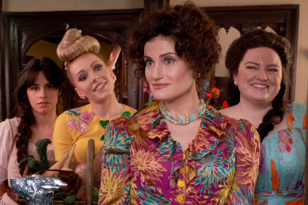 The story takes place in a faraway kingdom, where the townsfolk are introduced singing a cover of Janet Jackson’s ‘Rhythm Nation.’ It’s here that we meet our protagonist, the orphaned Cinderella or Ella (Camila Cabello), who’s living in a relatively spacious basement and dreams of becoming a dressmaker. We see her sketching and sowing gowns whilst belting out a rendition of Des’ree’s ‘You Gotta Be’ — with the help of autotune. Forced to serve her stepmother Vivian (Idina Menzel) and her not-so-evil stepsisters Narissa (Charlotte Spencer) and Malvolia (Maddie Baillio), Cinderella is determined to make her own way in the world. Vivian, however, is keen on the old-fashioned mentality of marrying off all her daughters because she believes that espousing a rich man would set them up for life.