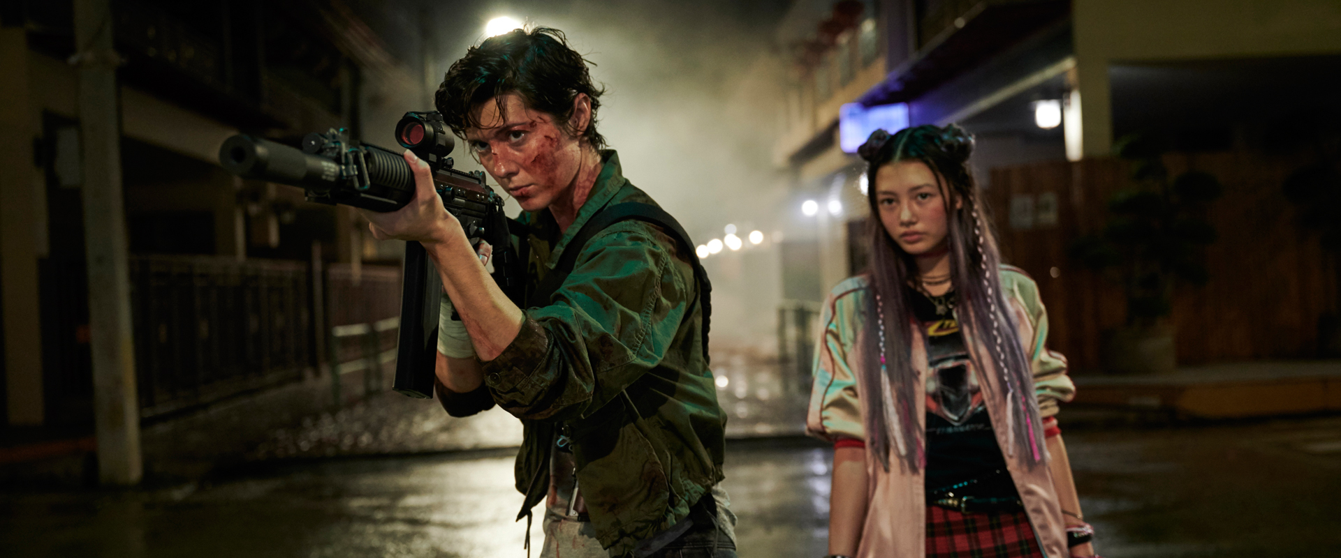 There must, of course, be one last job, and it’s when she’s prepping for this final mission that Kate finds herself slipped a radioactive mickey. With only 24 hours to live, she swipes a fistful of symptom-suppressing uppers and proceeds to kill her way up the Japanese crime food chain in the name of vengeance. In doing so, she finds herself captor/carer for Ani (Miku Martineau), who is a) the niece of Yakuza boss Kijima (Jun Kunimura), the man most likely responsible for her terminal condition, and b) the girl whose dad she popped in the opening scene.