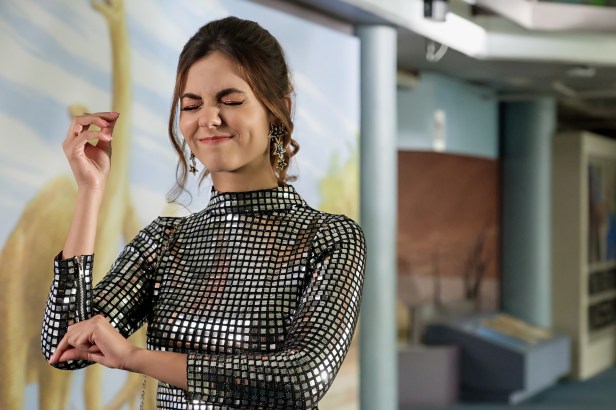While Cassie’s journey is somewhat predictable, Victoria Justice, Fun Size (2012), helps sell the character’s growth and development. We see Cassie transform from an egotistical party girl to a woman ready to face her bitter, complicated past; she resolves her own feelings and ultimately helps herself and others move on. The 28-year-old Justice fits the role of Cassie incredibly well and is confident and charming. She gives the proceedings a fun vibe with her energy and optimism and makes the glitzy, bubblehead character somebody audiences can root for. Oh, Justice gets a bangin’ wardrobe, too; the standout is a stunning beaded ‘disco ball’ dress, which almost didn’t make the cut due to its reflectivity — now, there’s an outfit that’ll really turn heads!