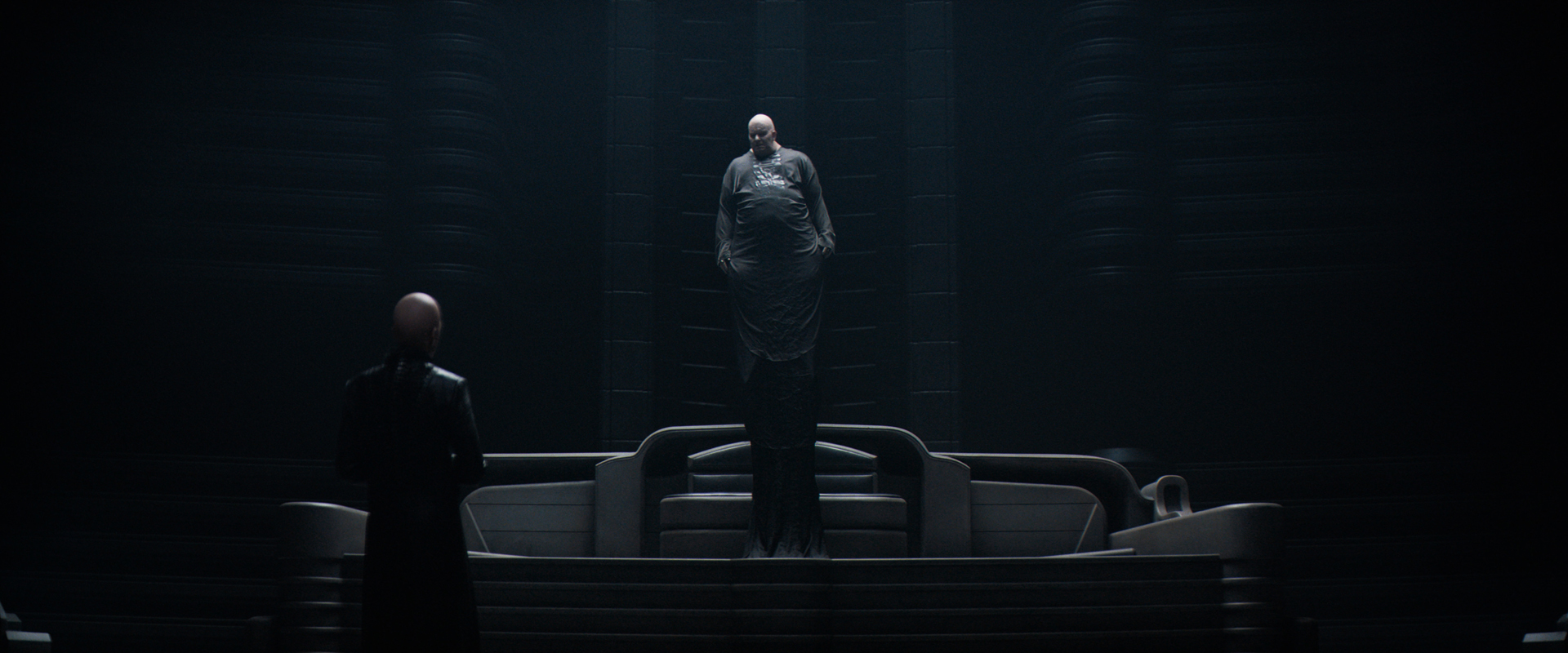 But what Villeneuve does exceedingly well is at least touch on that vastness that scared me half to death as a little kid. Sense of scale is an interesting thing in science fiction, and it’s far better communicated visually than in prose. You could argue with no small amount of justification that the key image in modern science fiction is that first shot of the Star Destroyer in pursuit of the Rebel Blockade Runner in the original Star Wars (1977), how the Imperial Ship looms into the frame seemingly from behind us and just keeps coming, an enormous metal sperm whale running down a minnow. Gareth Edwards, who already had Monsters (2010) and Godzilla (2014) under his belt at the time, got a similar, if less iconic, effect in 2016’s Rogue One with the shot of the Death Star’s super laser dish being lowered into place. The king of this sort of thing is sci-fi artist Chris Foss, whose paperback covers communicate the sheer size of his ships and planet-bestriding robots better than any other artist. Chris Foss actually worked on Chilean lunatic Alejandro Jodorowsky’s aborted but hugely influential attempt to film Dune back in the ‘70s, and while little of his influence is readily discernible in Villeneuve’s film (and that’s a pity, as we’ll talk about in a bit), Denis’ big, brutalist spaceships and buildings certainly pack a punch, especially on the big screen (and you should, if you can, make the trip for this one). Oppressively immense walls of metal tower over us, and even the quiet, airy spaces of the Atreides castles on Caladan and Arrakis seem too large for human use. The Spacing Guild Heighliners that carry House ships and personnel between the stars are so big you begin to understand how an ant must feel when a human fingertip stabs towards it with murderous intent. And we haven’t even got to the worms yet.