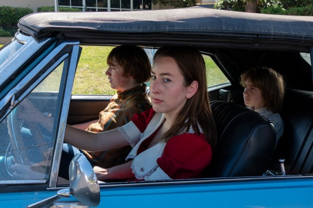 It’s hard to fathom that the two leads are making their debuts here. Musician Alana Haim seems a born movie star, and Cooper Hoffman (son of Anderson’s long-time collaborator Philip Seymour Hoffman) is organically perfect for his character. Anderson even manages to bring the whole Haim family to the film by including Alana’s sisters (Danielle and Este) and parents (father Moti and mother Donna) as her fictional family. Anderson has also worked with the HAIM sisters for many years as he directed most of their music film clips. There is a beauty to the casting of Hoffman and Haim; neither one has “movie star” looks, yet that everyday appeal of the characters is reinforced by the fact they are ordinary and a bit awkward. A lot of goodwill is generated by the leads by way of their everyman appeal. It also makes the romance, which is not a romance, more believable. Gary and Alana are simultaneously winners and losers. Each step on their light-hearted and sometimes implausible journey is grounded by their realness.