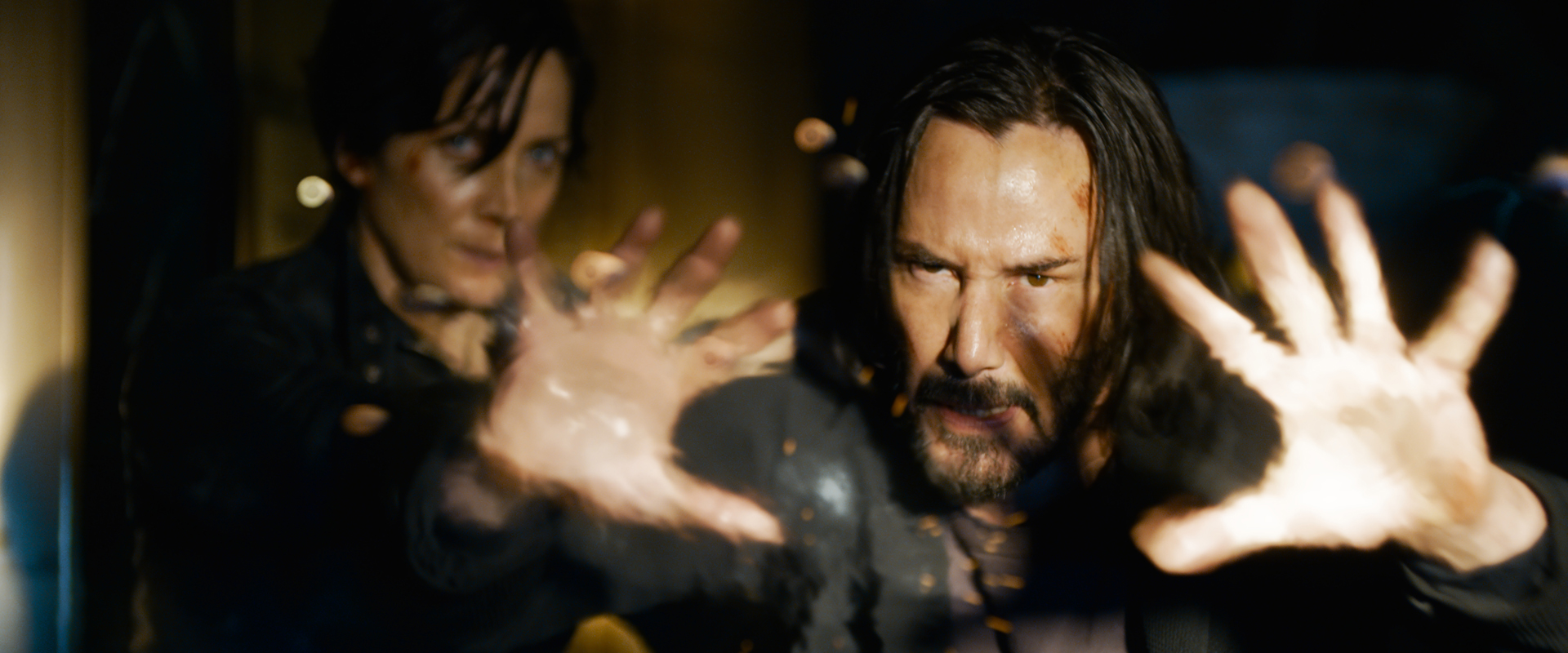 It genuinely feels as though writer-director Lana Wachowski (whose sister Lily is MIA this time) didn’t even want to make the movie. The story takes place sixty years after the events of Revolutions, where Neo (Keanu Reeves) is back in the Matrix — a simulated reality resembling our own, shaped by machines to pacify human minds and power the artificial intelligence. Now living under his original identity of Thomas Anderson, Neo is a successful video game developer in San Francisco who created a trilogy of games called The Matrix, based on dreams and hallucinations he’s had in the past — we see a lot of footage taken directly from the previous movies (inserts that many will find jarring).